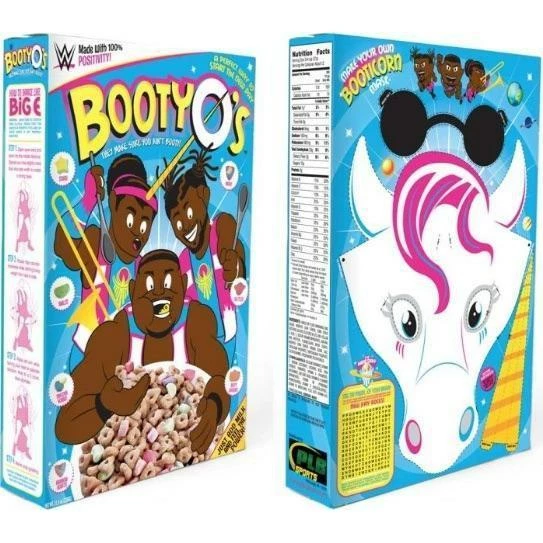Booty O’s were first introduced by the celebrated WWE stable, The New Day, as an ode to their catch phrase, “booty.” The group claimed that the cereal makes “sure you ain’t booty” and featured a giant Booty O’s box at WresleMania 32 as part of their entrance act. Now you can order your own box and enjoy a positive start to the day with Booty O’s.
